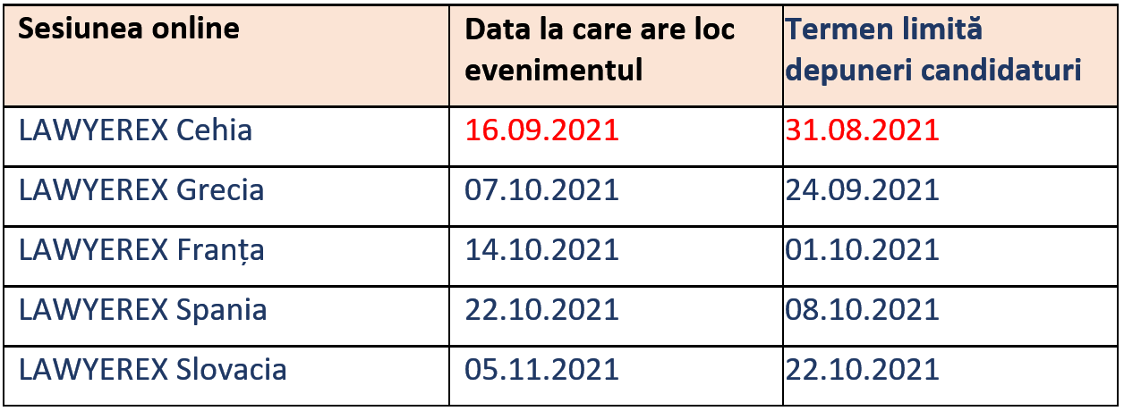 APEL LA CANDIDATURI PENTRU SESIUNILE ONLINE DIN CADRUL PROIECTULUI LAWYEREX
